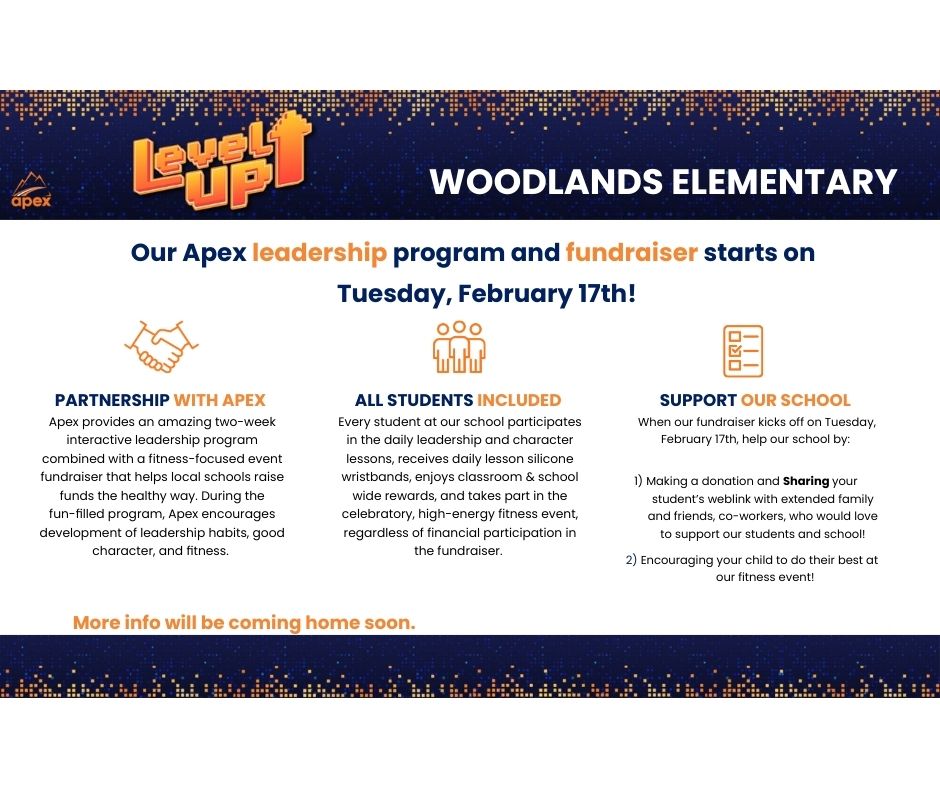 Woodlands Elementary & Woodlands Elementary PTA Get ready, Wildcats! The Apex Leadership program is here at Woodlands! Get ready for some great leadership habits, FUN at recess, and an epic fin...
