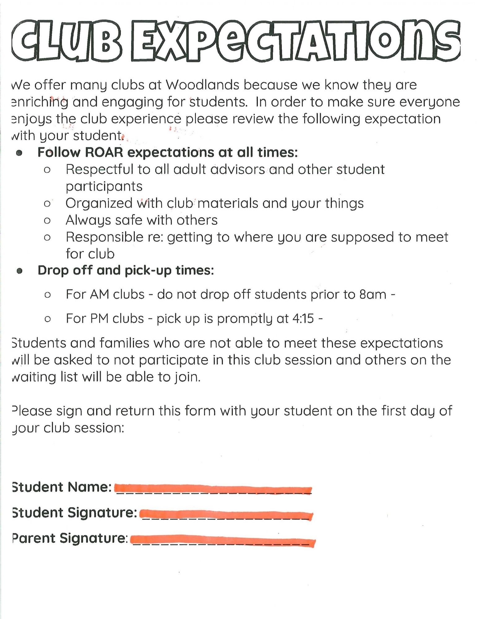 Please make sure your student’s Club Permission Slip is fully completed and turned in on time so they can participate!✅ Complete ALL sections ✅ Fill out the Club Expectations portion✅ Student signa...