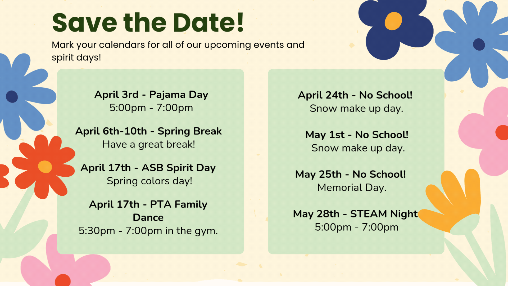 🗓️ SAVE THE DATE! Upcoming events and ASB spirit days you may want to mark on your calendars.